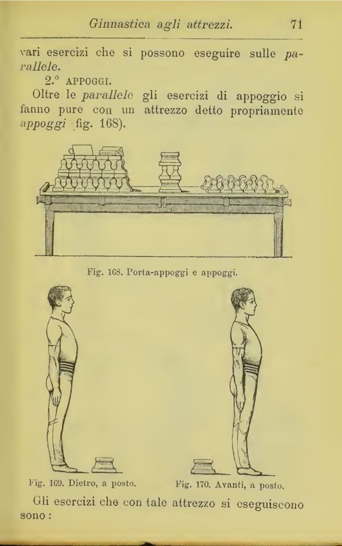 Oltre le parallele gli esercizi di appoggio si fanno pure con un attrezzo detto propriamente appoggi fig. 1GS).