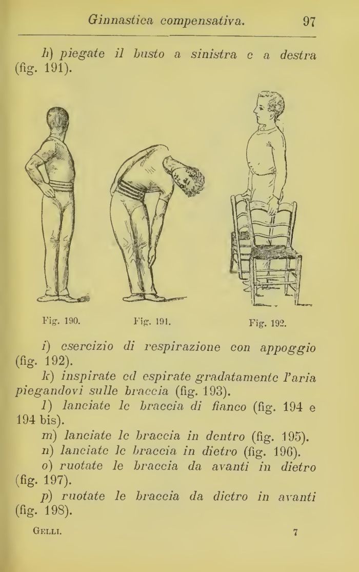 p) ruotate le braccia da dietro in avanti (fig. 198).