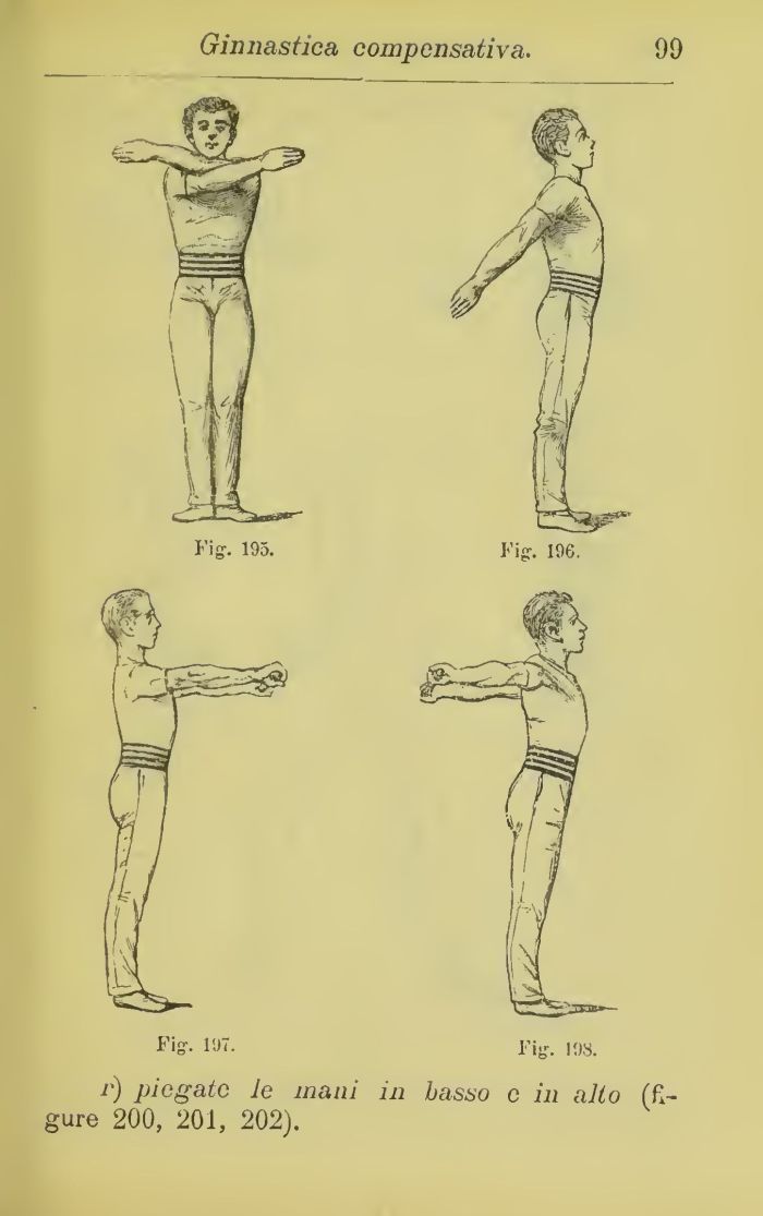 r) piegate le mani in basso e in alto (figure 200, 201, 202).