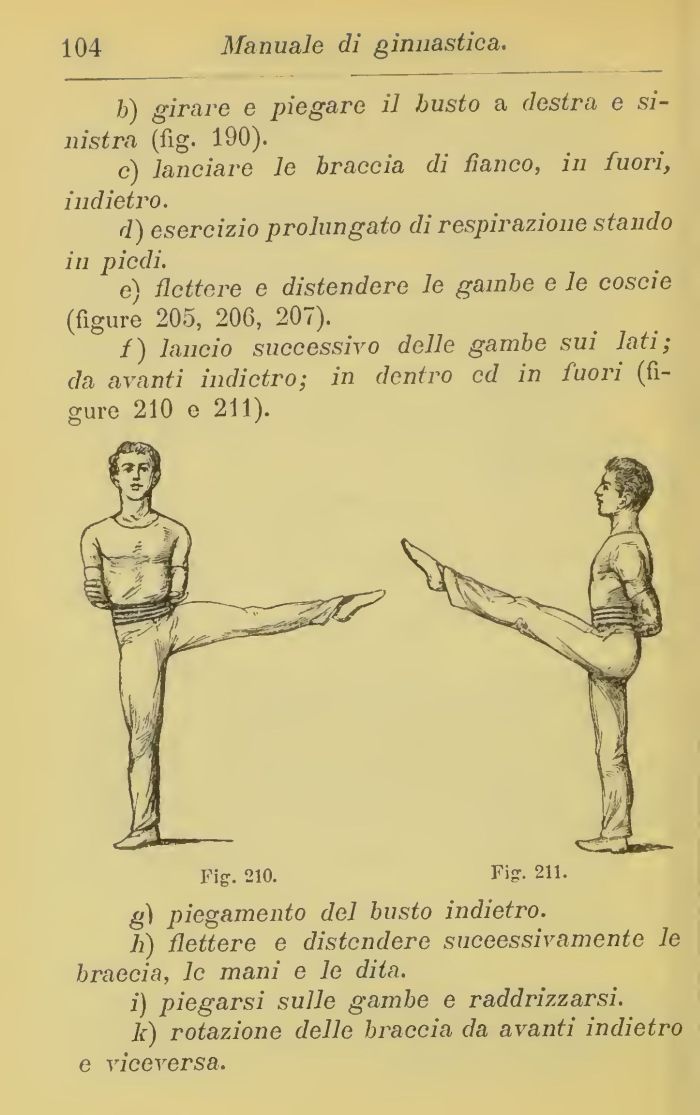 /) lancio successivo delle gambe sui lati; da avanti indietro; in dentro ed in fuori (figure 210 e 211).