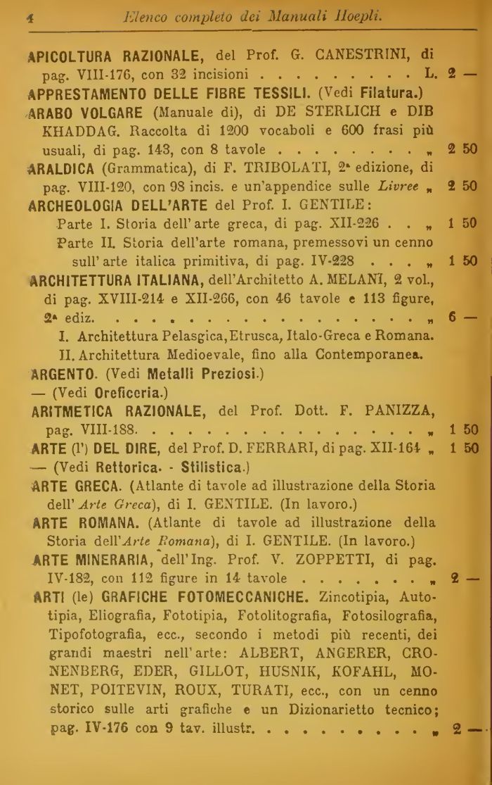 APPRESTAMENTO DELLE FIBRE TESSILI. (Vedi Filatura.) ARABO VOLGARE (Manuale di), di DE STERLICII e DIB KHADDAG. Raccolta di 1200 vocaboli e 600 frasi più