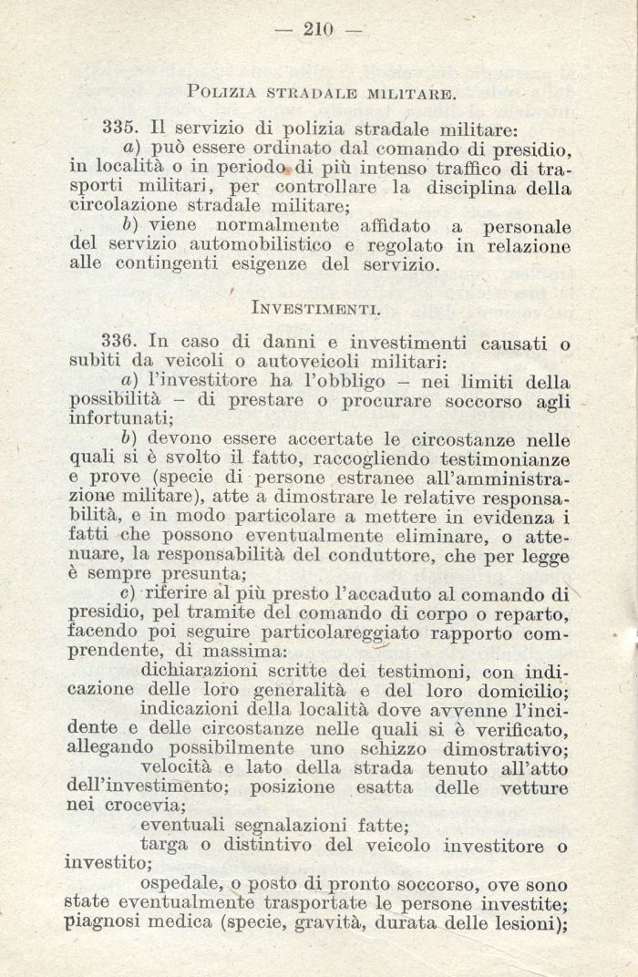 336. In caso di danni e investimenti causati o subiti da veicoli o autoveicoli militari: