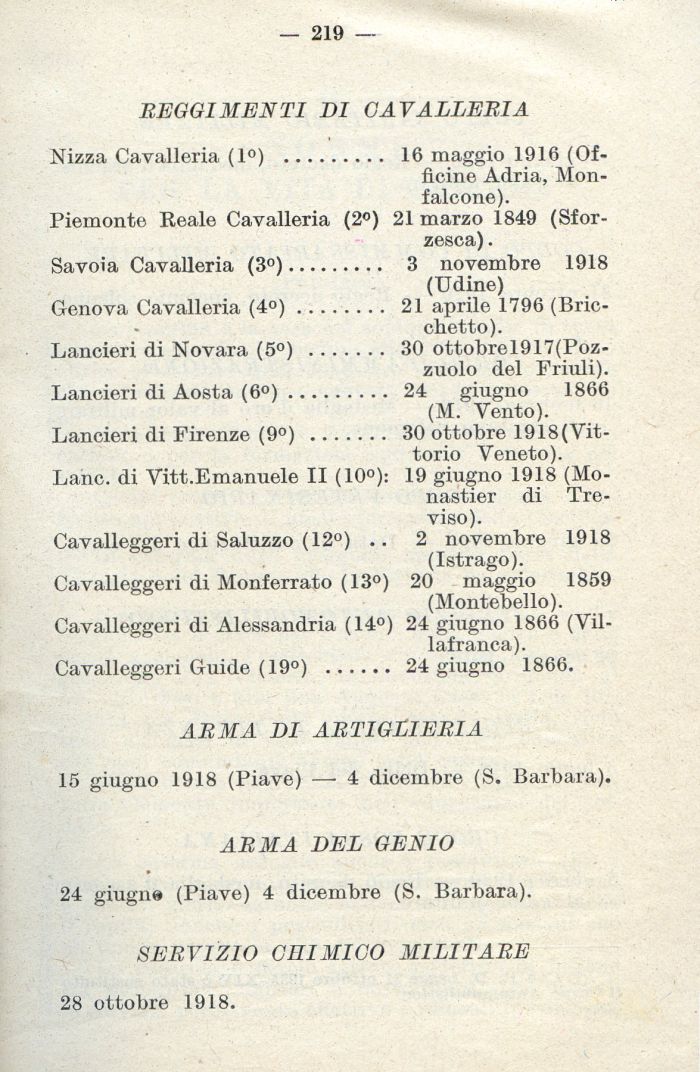 ARMA DEL GENIO 24 giugn» (Piave) 4 dicembre (S. Barbara).