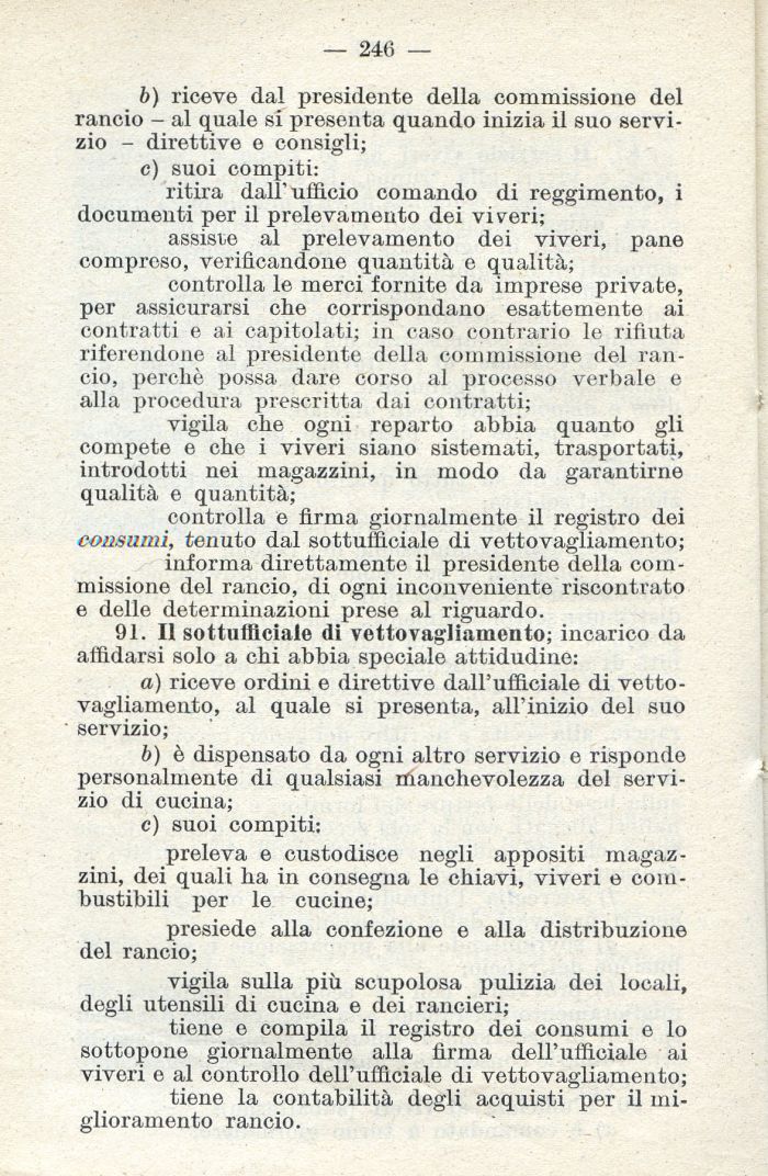 91. Il sottufficiale di vettovagliamento; incarico da affidarsi solo a chi abbia speciale attidudine: