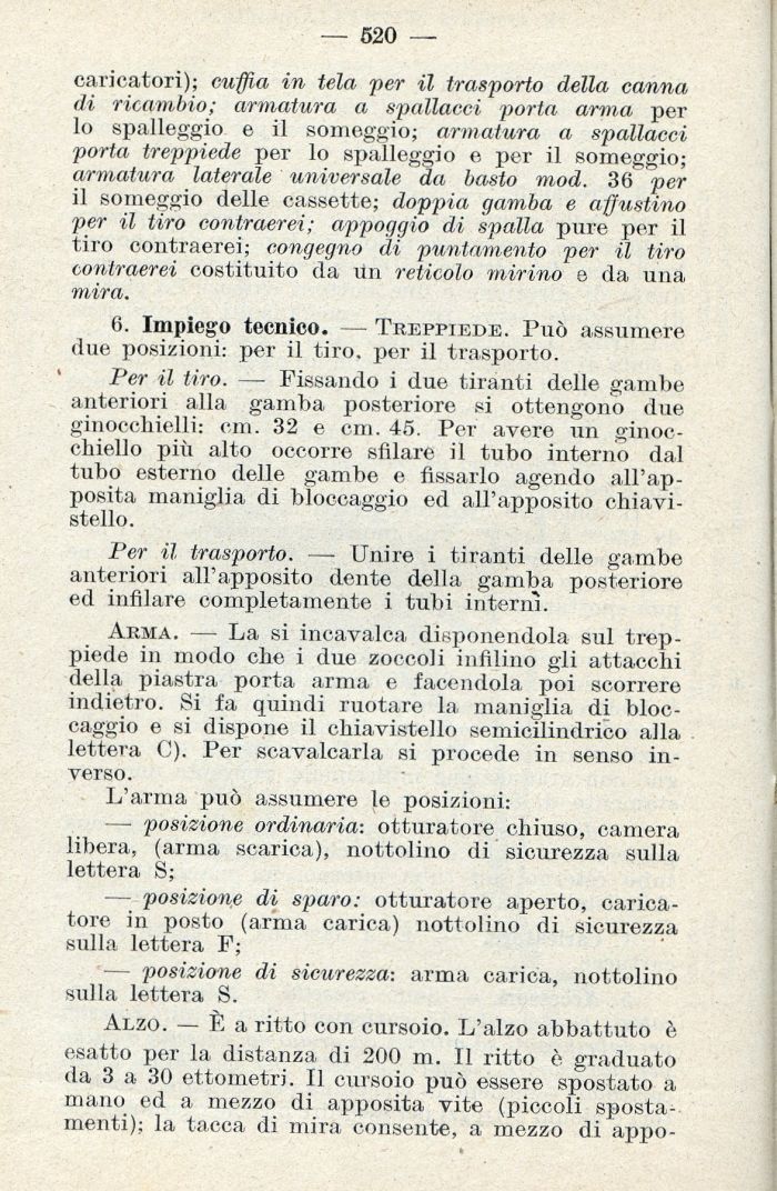 6. Impiego tecnico. — Treppiede. Può assumere due posizioni: per il tiro, per il trasporto.