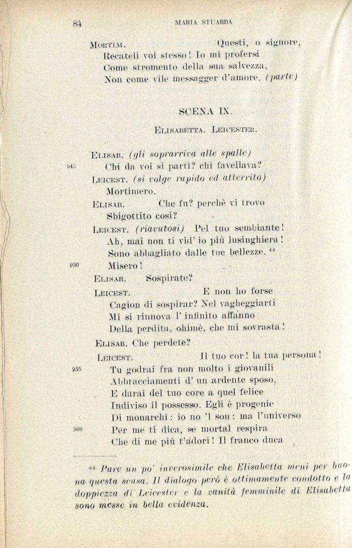 44 Pare un po' ili rovai in ile che Elisabetta meni per bau ua questa scusa. Il dialogo però e ottimamente condotto e la doppiezza di Leicester c la vanità femminile di Elisabetta sono messe in bella evidenza.