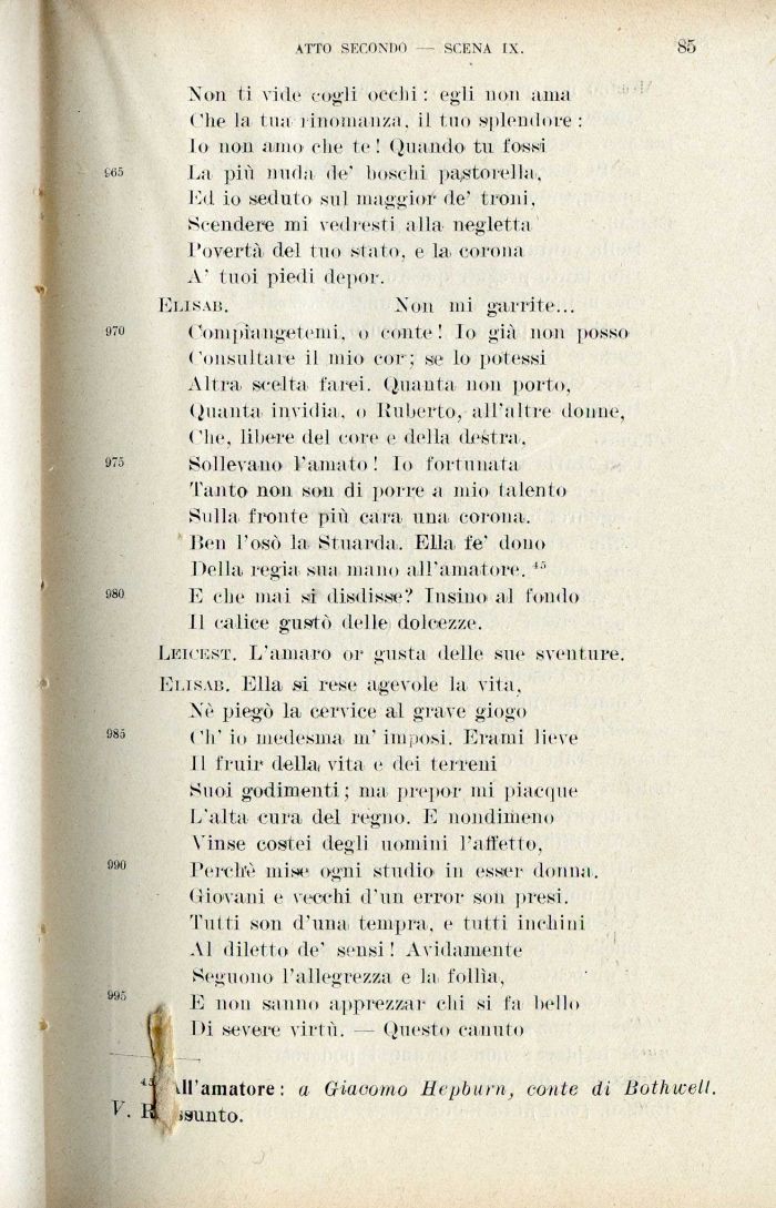 Compiangetemi, o conte! lo già non posso Consultare il mio cor; se lo potessi Altra, scelta farei. Quanta 11011 porto, Quanta, invidia, o Ruberto, all'altre donne, Che, libere del core e della destra. Sollevano l'amato! Io fortunata Tanto non son di porre a mio talento Sulla fronte più cara una. corona. Rea l'osò la Stuarda. Ella fe' dono Della regia sua mano all'amatore. 15 E che mai si disdisse? Tosino al fondo