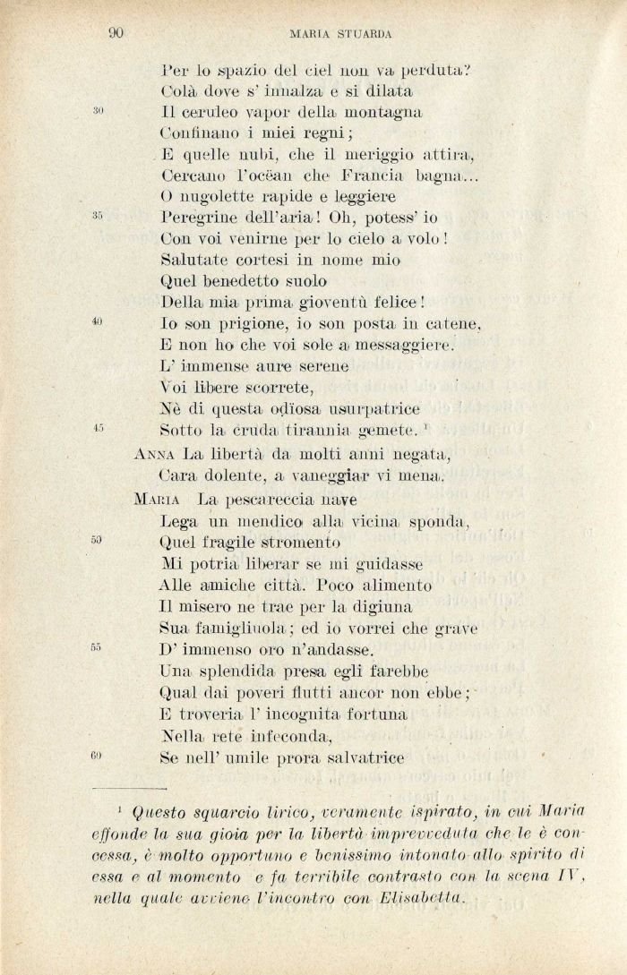 L' immense aure serene Voi libere scorrete, Ne di questa odiosa usurpatrice Sotto la cruda, tirannia gemete. 1 Anna La, libertà da molti anni negata, Cara dolente, a vaneggiar vi mena. Maria La pescareccia nave