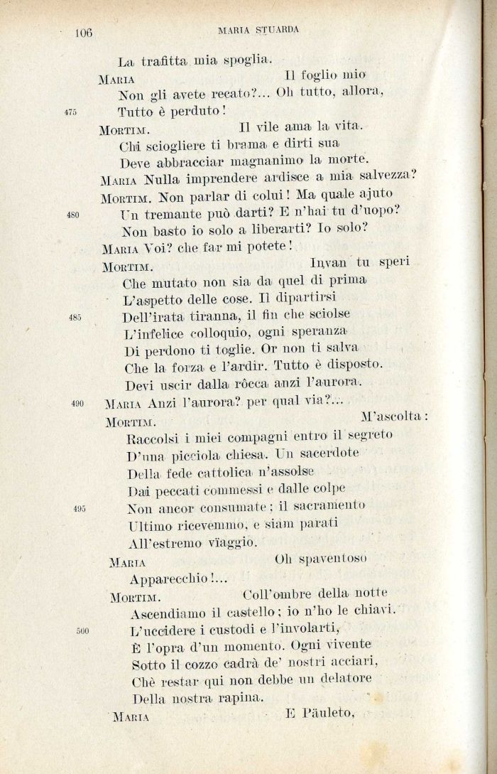Che mutato non sia da quel di prima L'aspetto delle cose. Il dipartirsi Dell'irata tiranna, il fin che sciolse L'infelice colloquio, ogni speranza Di perdono ti toglie. Or non ti salva Che la forza e l'ardir. Tutto è disposto. Devi uscir dalla ròcca anzi l'aurora.