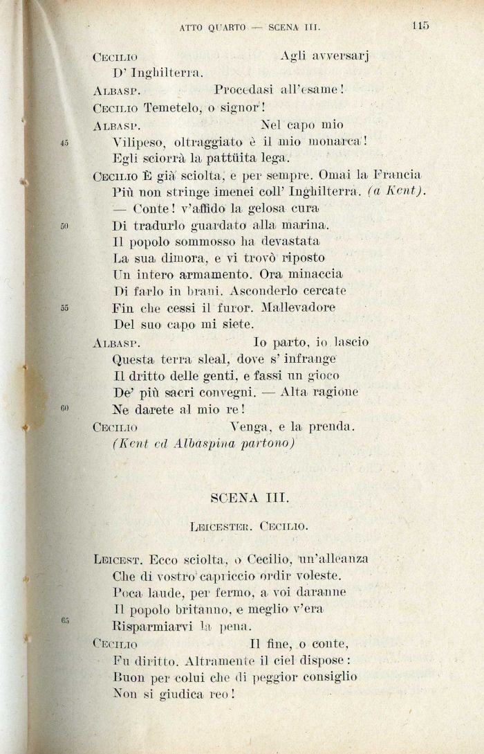 Leicest. Ecco sciolta, o Cecilio, un'alleanza Che di vostro capriccio ordir voleste. Poca laude, per fermo, a, voi daranne 11 popolo britanno, e meglio v'era Risparmiarvi la pena.