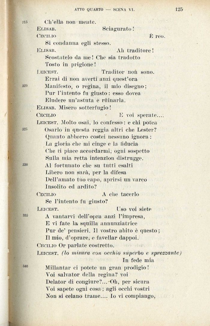 Errai di non averti anzi quest'ora Manifesto, o regina, il mio disegno; Pur l'intento fu giusto : esso dovea Eludere un'astuta e rumarla. Elisab. Misero sotterfugio ! Cecilio - 10 voi sperate....