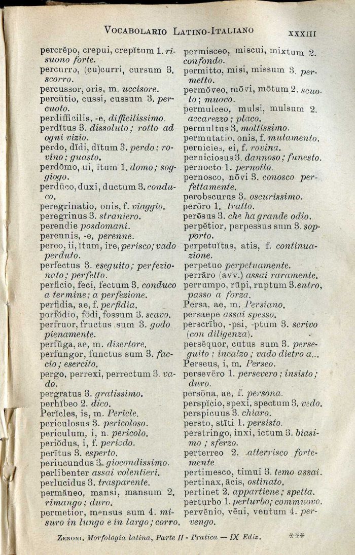 peregrinatio, onis, f. viaggio. peregrinus 3. straniero. perendie posdomani. perennis, -e, perenne. pereo, ii,ìtnm, ire,perisco;vado perduto.