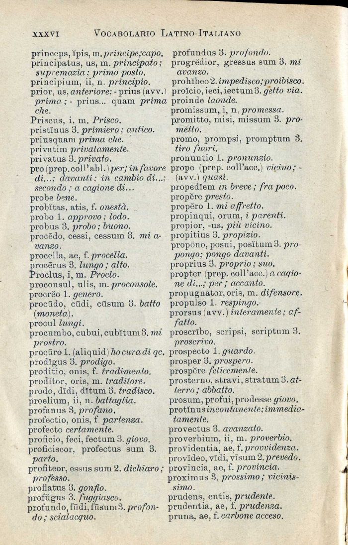 prosper 3. prospero. prospere felicemente. prosterno, stravi, stratum 3. atterro ; abbatto. prosum, profui, prodesse giovo. protlnus incontanente; immediatamente. provectus 3. avanzato. proverbium, ii, m. proverbio. providentia, ae, f. provvidenza. provldeo, vidi, ¦vls\rai2. prevedo.