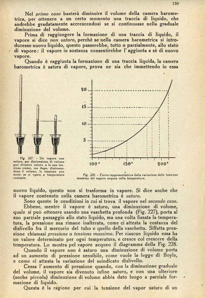 Prima di raggiungere la formazione di una traccia di liquido, il vapore si dice non saturo, perchè se nella camera barometrica si introducesse nuovo liquido, questo passerebbe, tutto o parzialmente, allo stato di vapore : il vapore in sostanza consentirebbe 1' aggiunta a sè di nuovo vapore.
