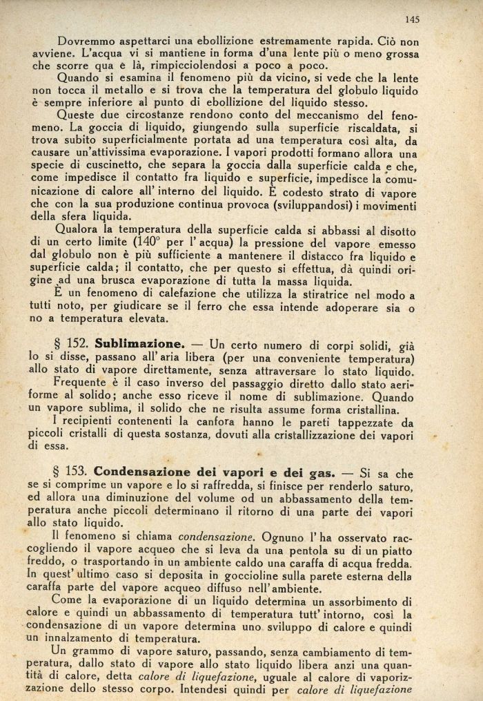 § 152. Sublimazione. — Un certo numero di corpi solidi, già lo si disse, passano all' aria libera (per una conveniente temperatura) allo stato di vapore direttamente, senza attraversare lo stato liquido.