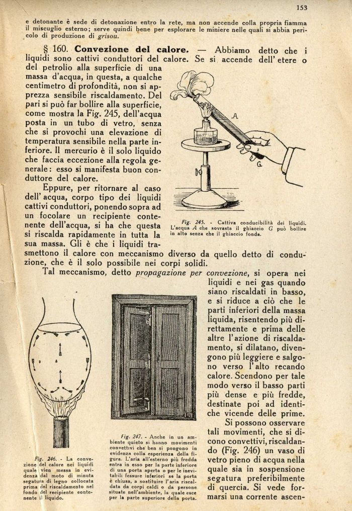 § 160. Convezione del calore. — Abbiamo detto che i liquidi sono cattivi conduttori del calore. Se si accende dell' etere o del petrolio alla superficie di una massa d'acqua, in questa, a qualche ^ ¦. j