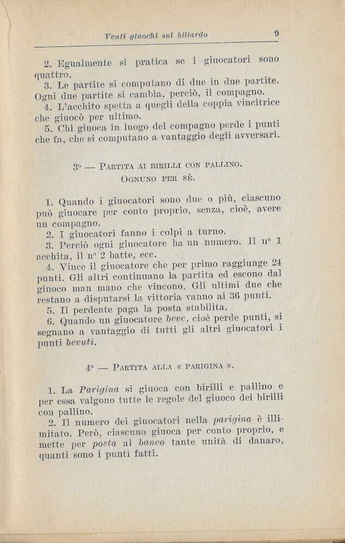 2. Il numero dei giuocatori ìndia parigina. è illimitalo. Però, ciascuno giuoca per conto proprio, e mette per posta al banco tante unità di danaro, quanti sono i punti fatti.