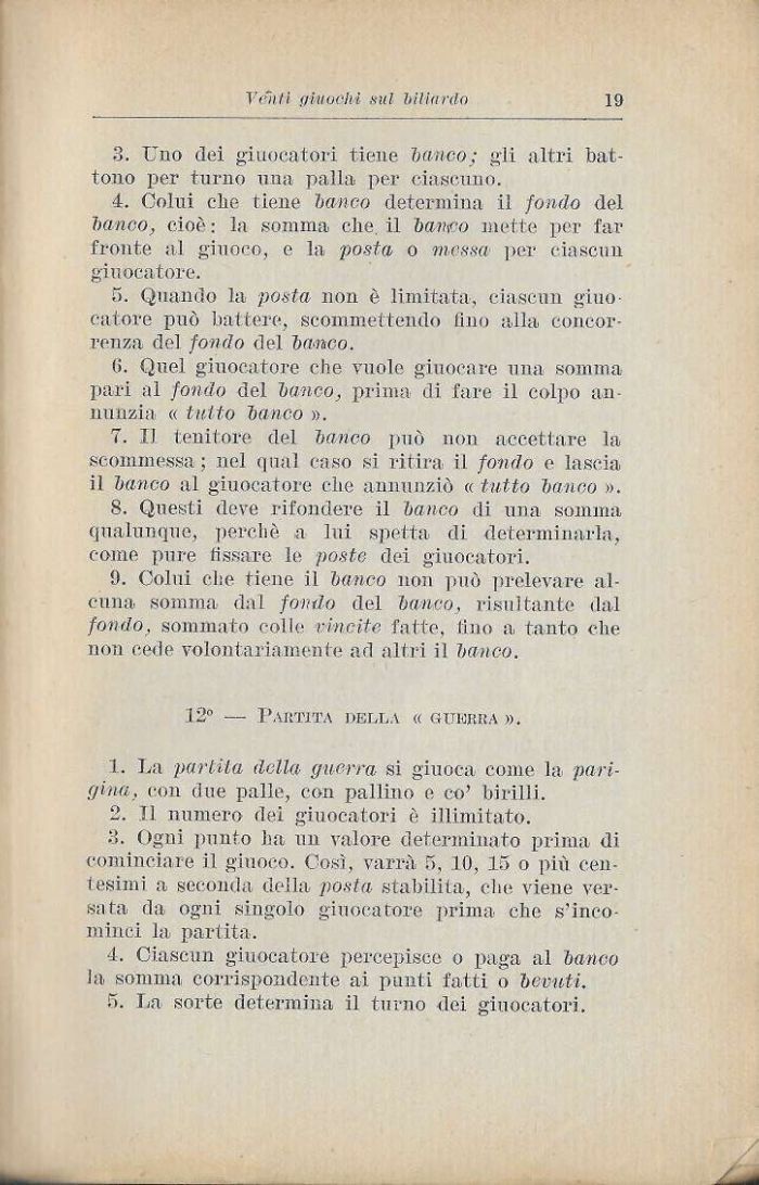 3. Uno dei giuocatori tiene banco; gli altri battono per turno una palla per ciascuno.