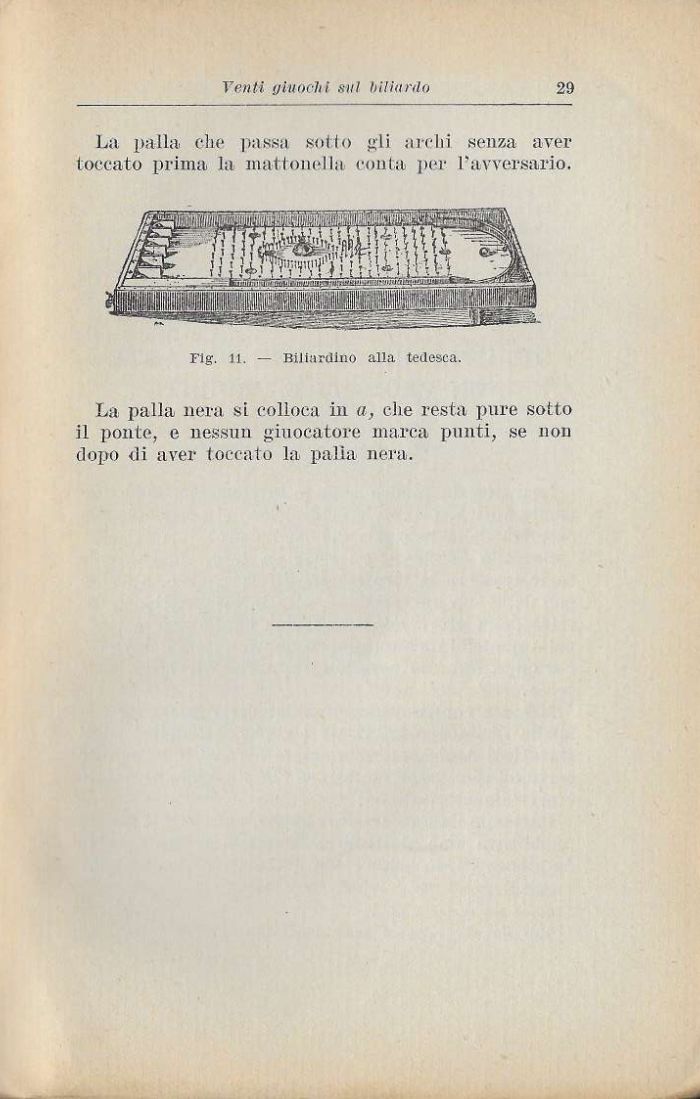 La. palla nera si colloca in a, die resta pure sotto il ponte, e nessun giuocatore marca punti, se non dopo ili aver toccato la palla nera.
