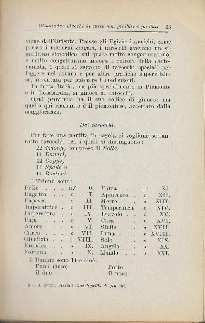 Jn tutta Italia, ma piìi specialmente in Piemonte e in Lombardia, si giuoca ai tarocchi.