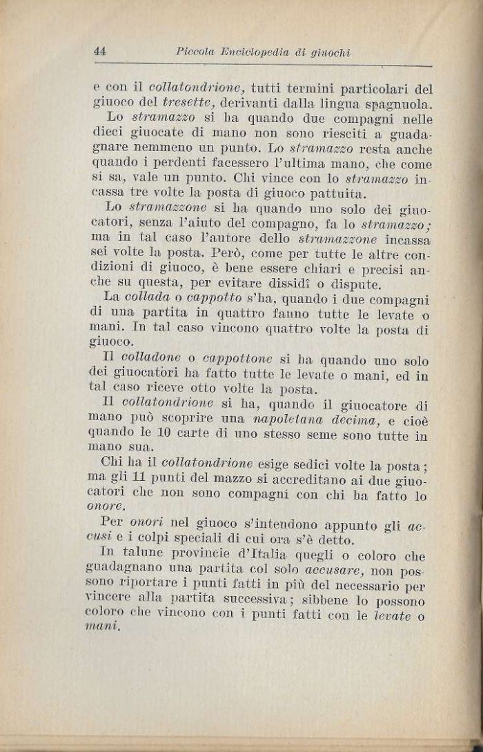 e con il collatondrionc, tutti termini particolari del giuoco del tresette, derivanti dalla lingua spaglinola.