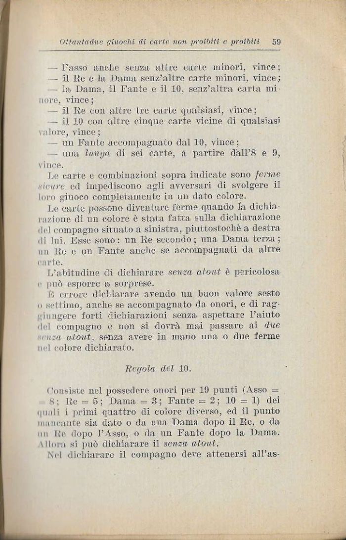- il Re e la Dama senz'altre carte minori, vince; la Dania, il Fante e il 10, senz'altea carta minore, vince;