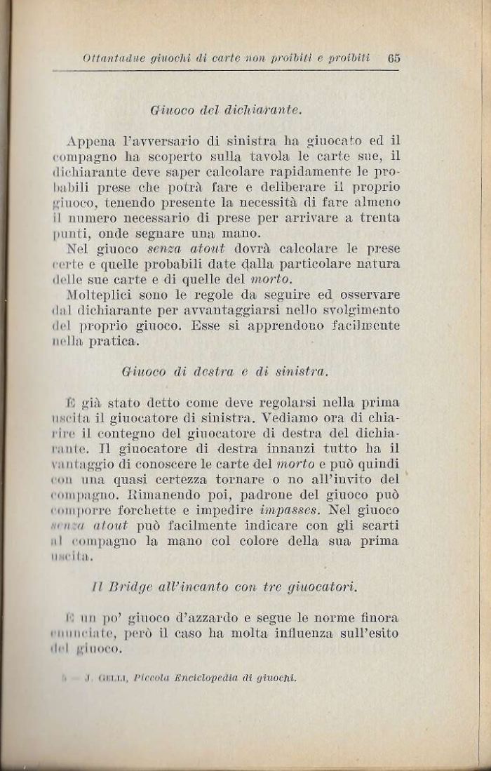 Molteplici sono le regole da seguire ed osservare • !al dichiarante per avvantaggiarsi nello svolgimento -lei proprio giuoco. Esse sì apprendono facilmente nella pratica.