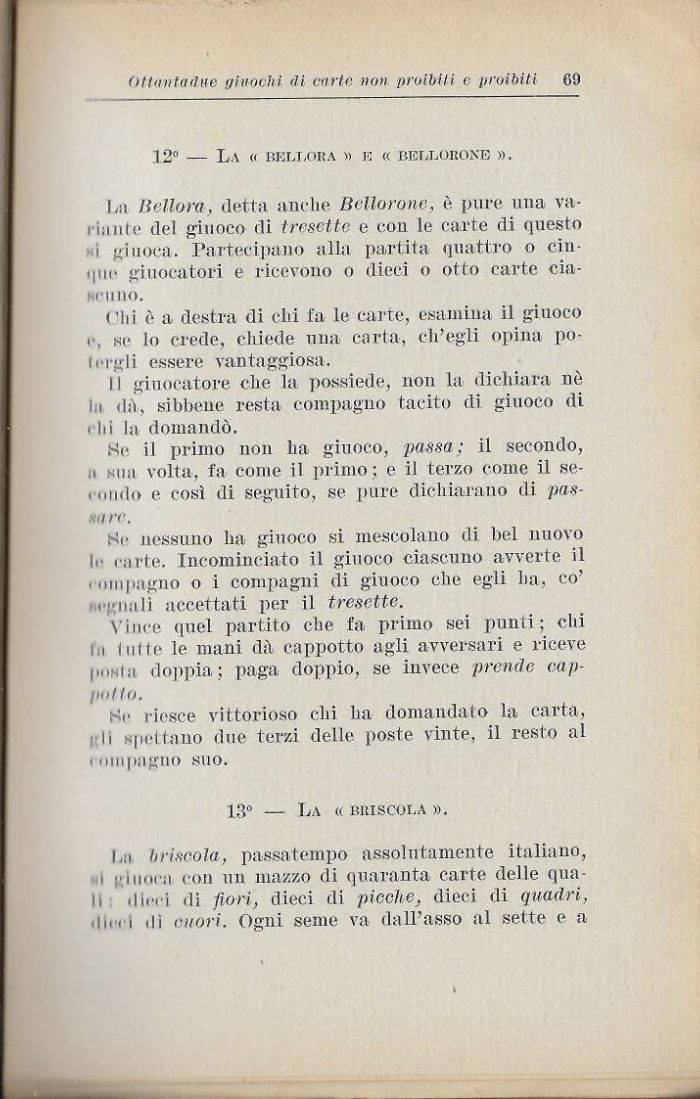i,.i briscola, passatempo assolutamente italiano, i -inora con un mazzo «li quaranta carte delle quali irci di fiori, dieci di picche, dieci di quadri, deci di cuori. Ogni seme va dall'asso al sette e a