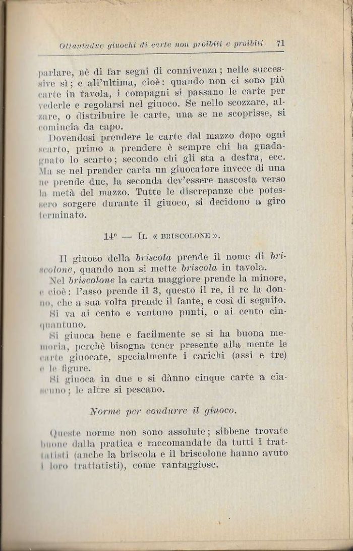 Il giuoco della briscola prende il nome di bri-• Ione, quando non si mette briscola in tavola.
