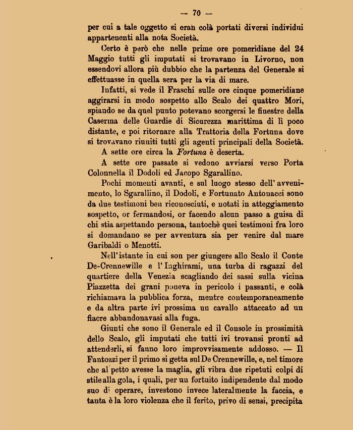 Certo è però che nelle prime ore pomeridiane del 24 Maggio tutti gli imputati si trovavano in Livorno, non essendovi allora più dubbio che la partenza del Generale si effettuasse in quella sera per la via di mare.