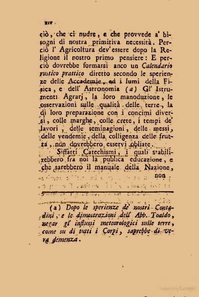 ( a ) Dopo le sperienze de' nostri Contadini , e le dimostrazioni dell Abb. Toatdo, nen„ar gl' influssi meteorologici sulle terre, coi ne su di tutti i Corpi, saprebbe di -vera Amenza.
