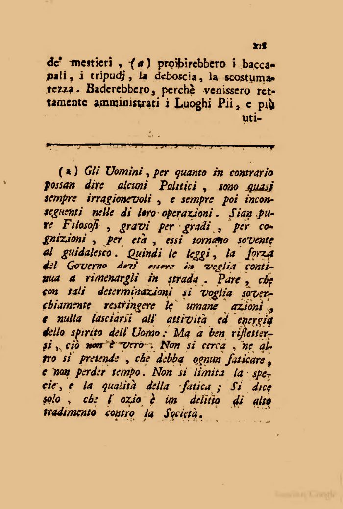 ( a ) Gli Uomini, per quanto in contrario possati dire alcuni Politici , sono quasi sempre irragionevoli , e sempre poi inconseguenti nelle di Uro operazioni. Siaa pure Filosofi , gravi per gradi , per cognizioni , per età , essi tornano soventi al guidalesco. Quindi le leggi, la forza del Governa Jrrf tu**? in veglia continua a rimenargli in strada . Pare, ctf con tali determinazioni si voglia soverchiamente restringere le umane azioni , t nulla lasciarsi all' attiviti ed eitergif dello Spirito dell' Uomo : Ma a ben rifletterti , ciò it