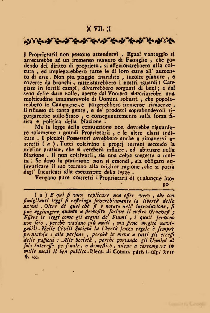 (a ) E qui fi vuoi replicare ne» ejfrr vero , the con fi mi gitanti leni fi rejtringa fover chiarente la libertà dette azioni . Oltre di quel che fi è notato ne II* introduzione, fi può aggiungere quanto a propnfitò feri-ve il mfìro Genovefi j E fere le leggi conte gli argini de _ Fiumi T i quali fervono non falò , perete vadano più uniti , ma fieno meglio navigabili . Nelle Civili Società la libertà Jenza regole è fempre perni ero fa : alle per fon; , perchè le mena a lutti gli e caffi delle pajfioui : Jtìle Società , perche portando gli Uomini di foh interne perfnnìe, o denteili co , viene a corrompere in mille modi il ben puliicv.^EAem. di Comm. part. i.cap. XVit S. ut.