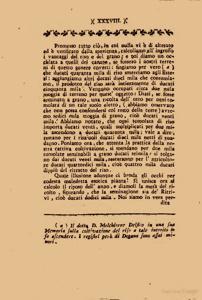 («11/ iiottn D. Melchiorre Delfico in una fua Memoria fulla coltivazione del rifo a tale introito fa fa afcende/e. I regiflri poà. di Dogana fono affai mi-nori .