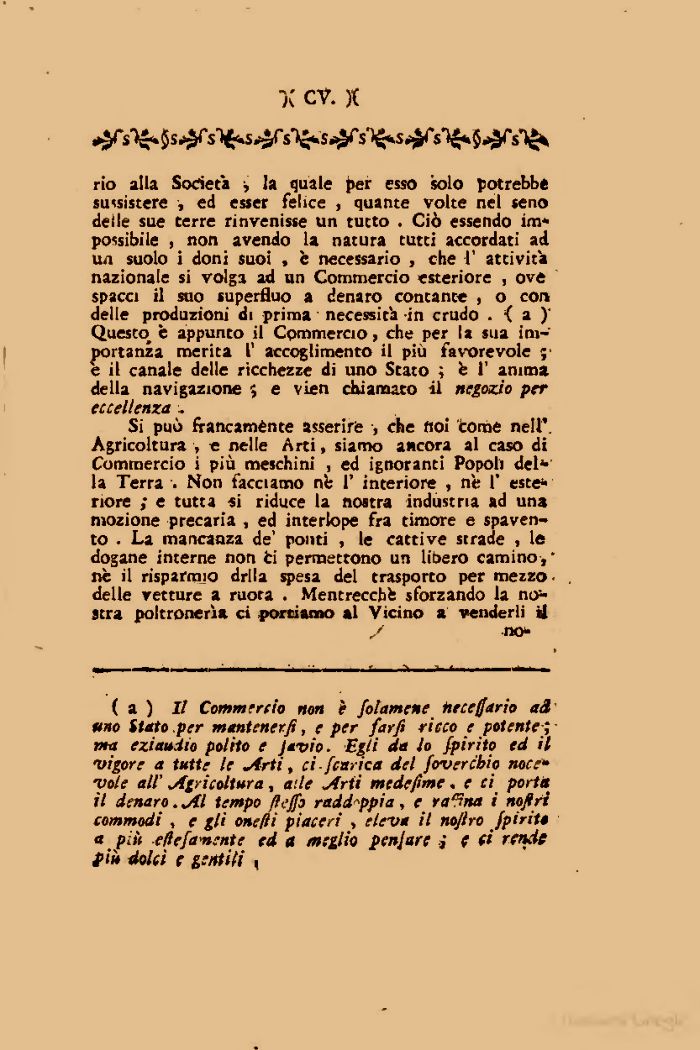 ( a ) Il Commercio non è Solamene iteceli arto ad uno Stato per mantener fi, e per farfi ricco e potente $ ma eziauiio polito e Javio. Egli da lo Spirito ed il vigore a tutte le Arti, ci-Scarica del Soverchio noce» vote all' .Agricoltura, ade Arti medefime « e ci porti il denaro. jtl tempo fieffo raddoppia , e ra^na i nofiri commodi , e gli onefìi piaceri , eleva il nojlro Sp'r't9 a più eli e [avente ed et meglio pensare i e ti rende più dolci e gentili ,
