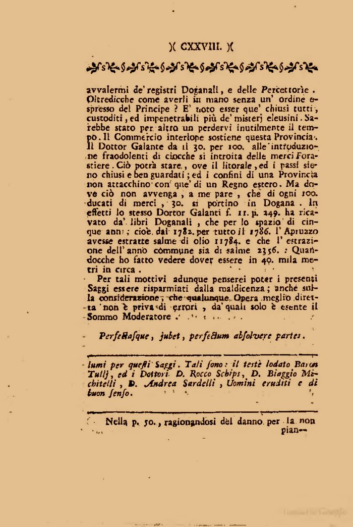 lumi per quefii'Saggi. Tali fono: il teste lodato Barcn Tuli), ed i Dottori O. Hocco Schips ^ D. Biaggio Mt-chìtelli , ». jindrea Sardelli , Uomini eruditi e dì buon fenfo. ' * '<