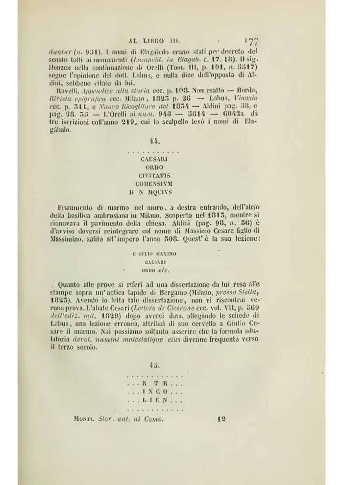 dunlur (11. 9ol). I nomi di Klagabalo erano siali per decreto del senato tolti ai monumenti (fjunprid. in Etagab. e. 17. 18). Ilsig. Ilenzcu nella continuazione di Orelli (Tom. Ili, p. 101, n. 5317) segue l'opinione del dott. Labus, e nulla dice dell'opposta di Aldini, sebbene citato da lui.