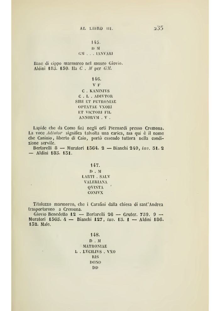 Lapide che da Como fin์ negli orti Picenardi presso Cremona. La voce Ad hit or significa talvolta una carica, ma qui ่ il nome che Caninio, liberto di Caio, port๒ essendo tuttora nella condizione servile.