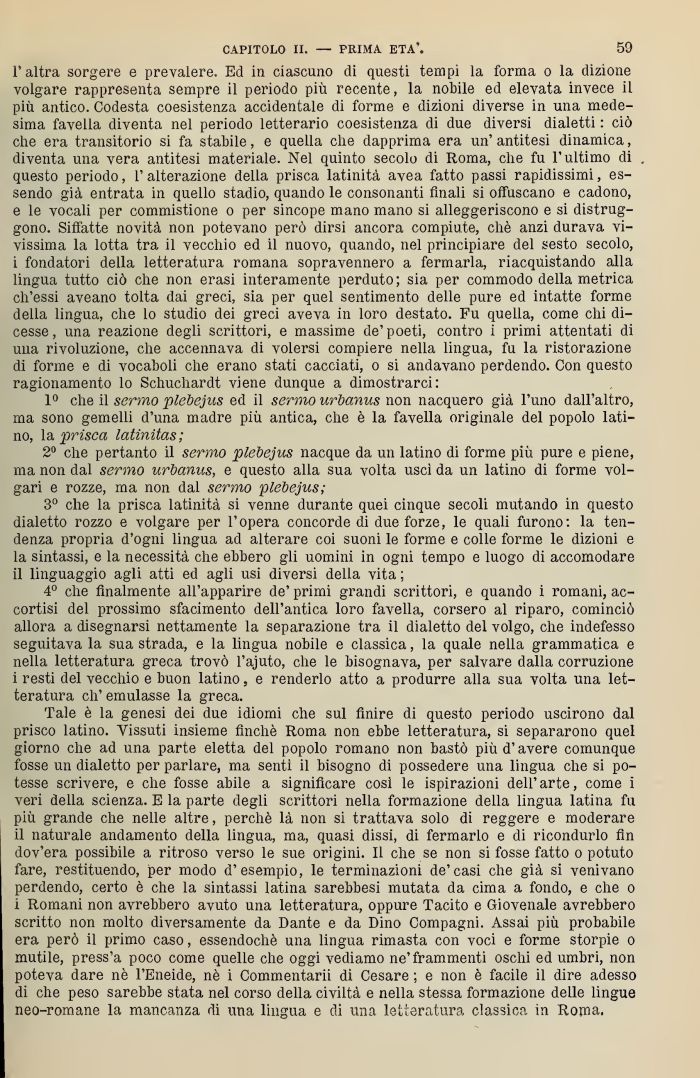1° che il sermo plebejus ed il sermo urbanus non nacquero già l'uno dall'altro, ma sono gemelli d'una madre più antica, che è la favella originale del popolo latino, la prisca latinitas;