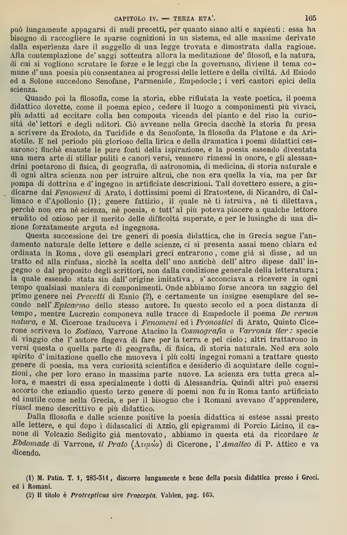 (1) M. Patin. T. 1, 283-311, discorre lungamente e bene della poesia didattica presso i Greci, ed i Romani.