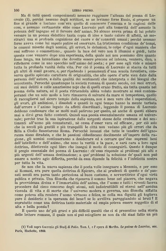 (1) Vedi «opra Lucrezia gli Sludj di Patin. Tom I, c V opera di Marlha. Le poème de Litcrèce, ecc. Paris, Hacliette, 1809.