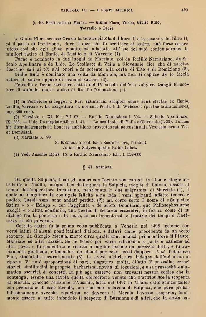 § 40. Poeti satirici Minori* — Giulio Floro, 'iTurno, Giulio Rufo, Tetradio e Bscio