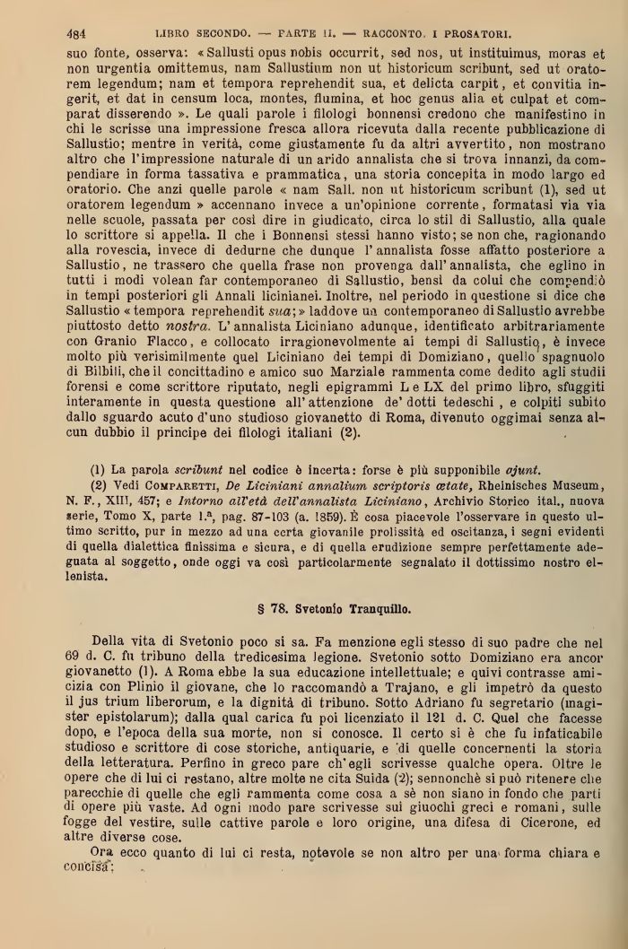 (2) Vedi CoMrARETTi, De Liciniani annalivm szriptorìs estate, Rheinisches Museum, N. F., XIII, 457; e Intorno all'età dell'annalista Liciniano, Archivio Storico ita)., nuova «erie, Tomo X, parte l.a, pag. 87-103 (a. 1859). È cosa piacevole l'osservare in questo ultimo scritto, pur in mezzo ad una certa giovanile prolissità, ed oscitanza, i segni evidenti di quella dialettica finissima e sicura, e di quella erudizione sempre perfettamente adeguata al soggetto, onde oggi va così particolarmente segnalato il dottissimo nostro el-< lenista.