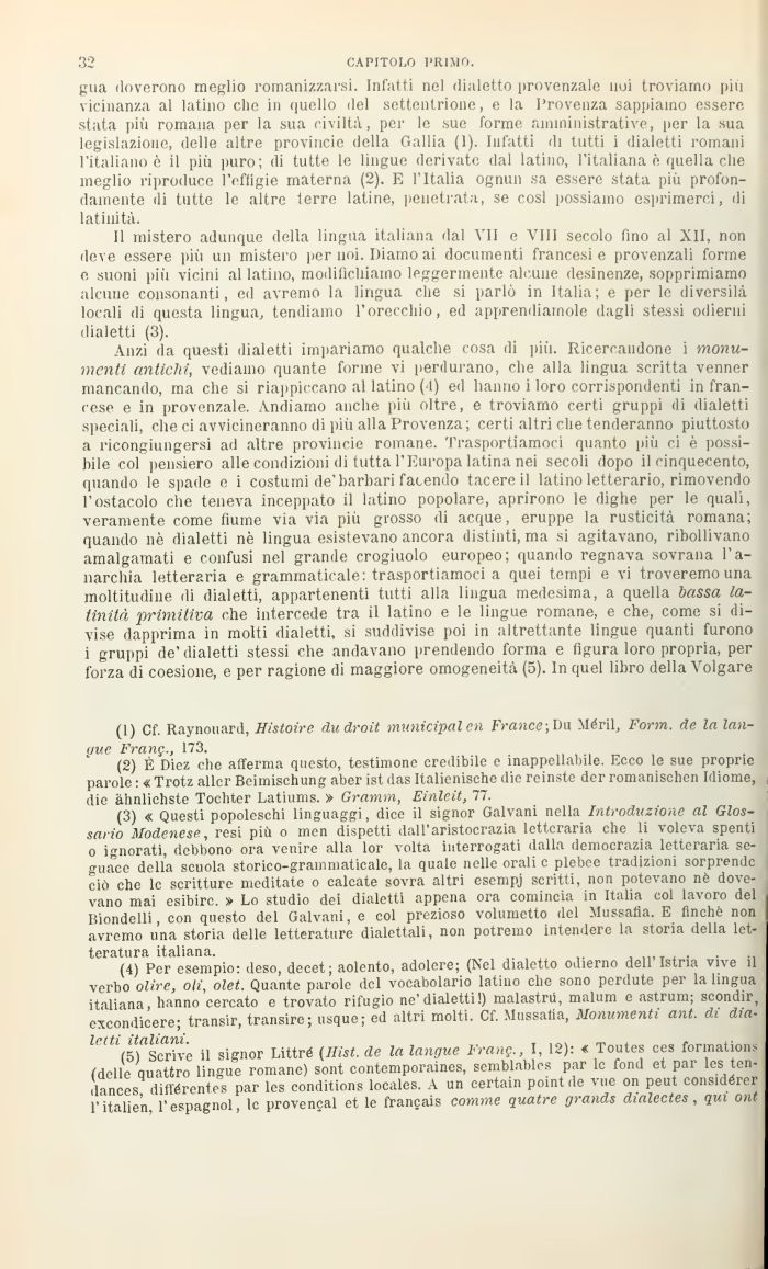 (2) È Diez che afferma questo, testimone credibile e inappellabile. Ecco le sue proprie parole : « Trotz allcr Beiraischung aber ist das Italienische die reinste der romanischen Idiome, die àhnlichste Tocbter Latiums. » Grarnm, Einleit, 77.