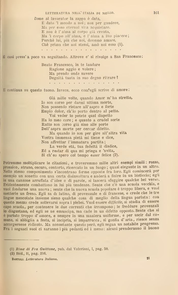 (2) lbid., II, pag. 216. Bartoli. Letteratura Italiana.