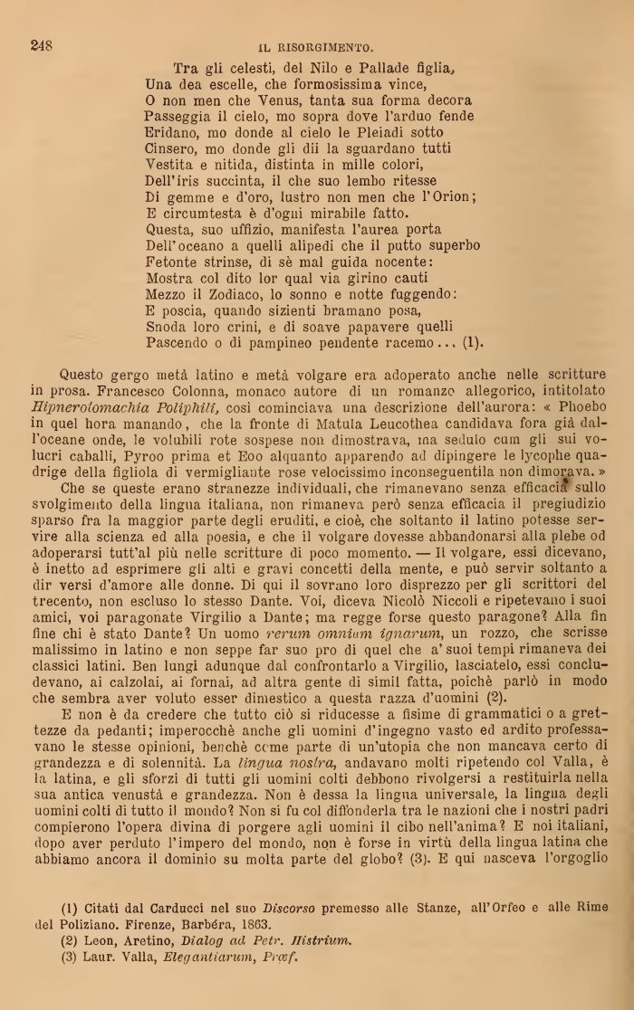 (1) Citati dal Carducci nel suo Discorso premosso alle Stanze, all'Orfeo e alle Rime del Poliziano. Firenze, Barbèra, 1863.