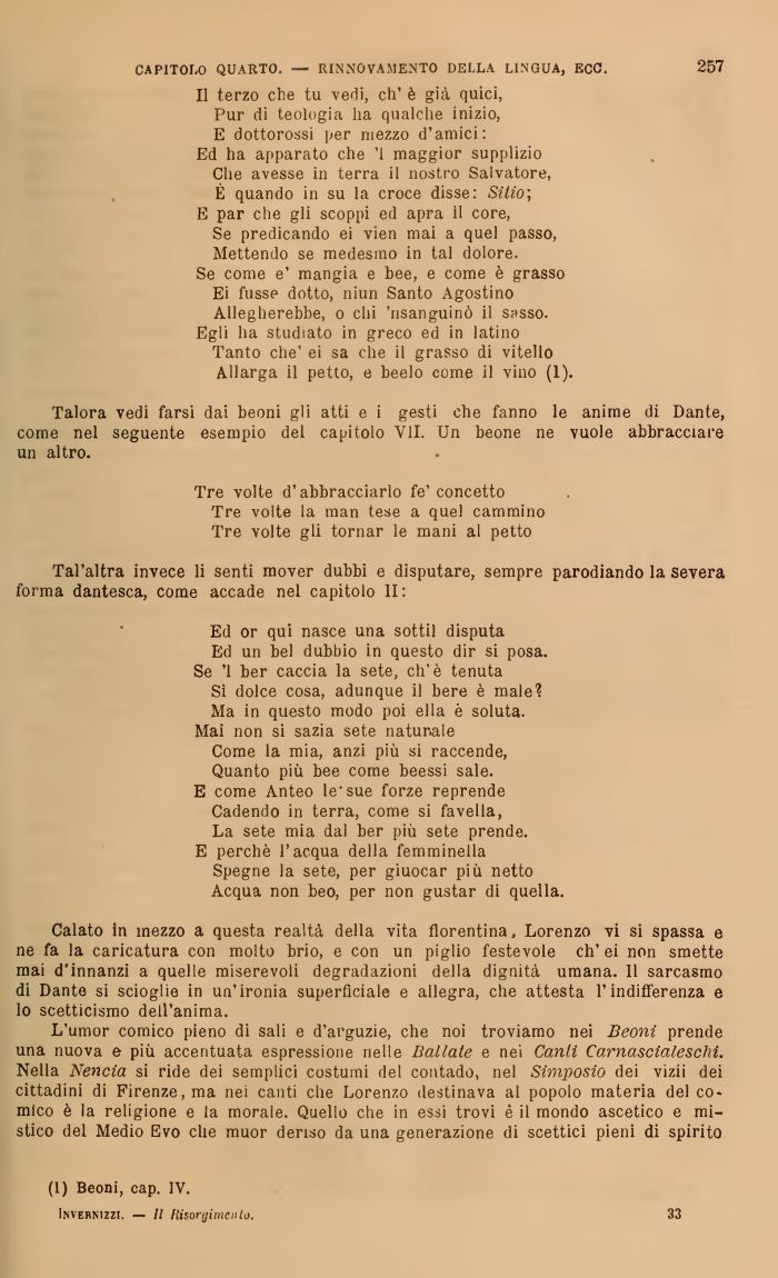 (1) Beoni, cap. IV. Invehmzzi — II Risorgimento.