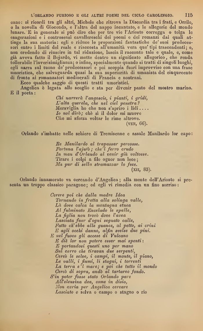 l'orlando furioso li gli altri poemi del ciclo carolingio. 115