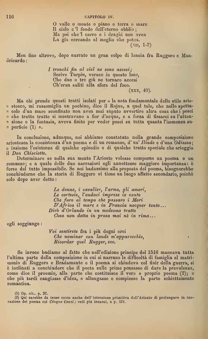 (2) Qui sarebbe da tener conto anche dell'intenzione primitiva dell'Ariosto di prolungare la narrazione del poema coi Cinque Canti; vedi più innunzi, a p. 124,