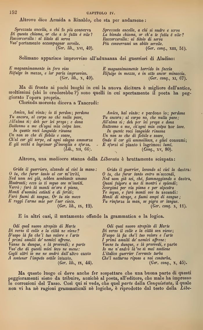Ma questo luogo ci deve anche far sospettare che una buona parte di questi peggioramenti sieno da tribuire, auz che al poeta, all'editore, che male ha impresso le correr .oni del Tasso. Così qui s vede, che quel parte della Conqvp stata, il quale non v; ha nè rag mi grammaiisali nè logiche, è riprodotto dal testo della Libe-
